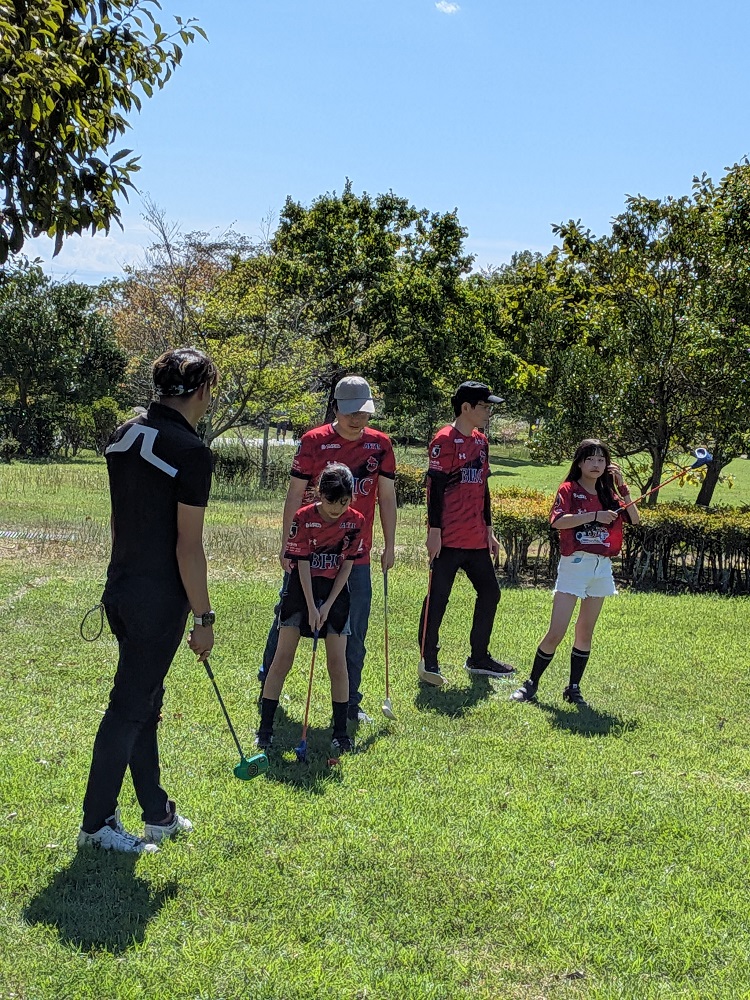 体験内容は、福島県プロ会を中心にクラブの握り方・スイングなどレッスンの後、ランチャーを使用してゲームなどを楽しみました。初心者でも「打つ」「狙う」楽しさを体感、参加者は15分~20分程度で体験ができ、短時間で達成感を得られる内容で構成しました。